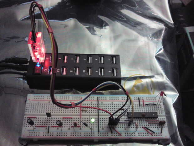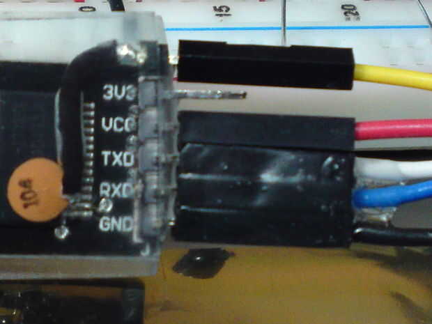 Después de que usted vuelva a has conectado todos los cables desde el módulo USB a la Breduino otra vez y Antes de enchufar en el USB adaptador en un puerto USB-