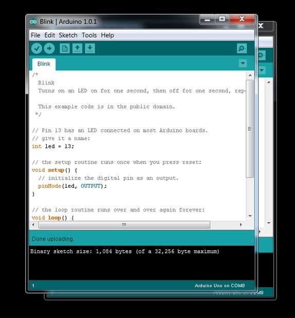 Tan pronto como termine de subir su Arduino IDE debe parecerse a la imagen de abajo con el Pin 13 LED destellando lejos!!!!!!
