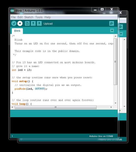 Ahora mire la imagen de abajo, este es el lugar se encuentra el esbozo de 'Blink' - Seleccione este bosquejo y otra ventana del IDE de Arduino se abren-para arriba como se muestra en las siguientes imágenes...