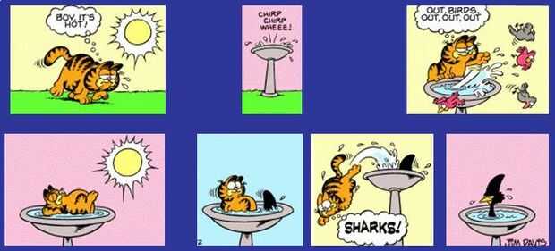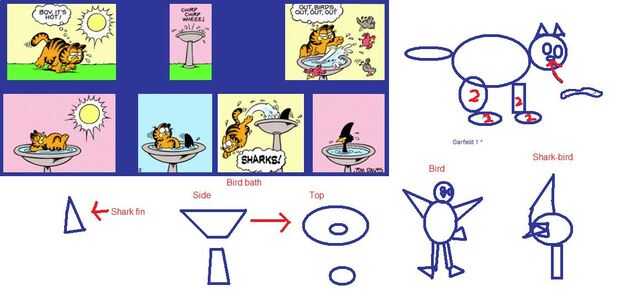 Analizar cuidadosamente todas las expresiones, esto será importante para el detalle. Una expresión puede cambiar toda la escena. Por ejemplo, ¿qué pasa si Garfield parecía relajado cuando vio al tiburón? Haría que el cómico confuso y se llevará todo el humor. Por esta razón es importante analizar cada expresión y ver lo que la hace diferente de los demás. Delinear las partes que cambian con la expresión en los personajes, generalmente ojos y boca.
