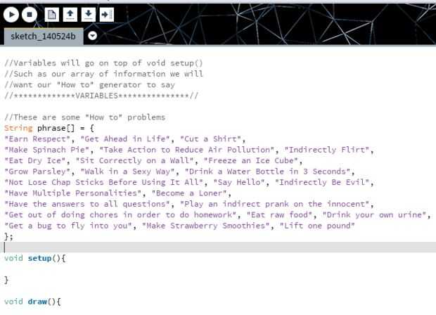 Nota: Estas variables se ubicará por encima de void setup(), así que habitación para ellos.