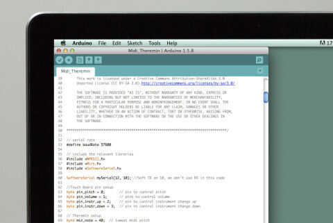 Ahora necesitamos subir el código MIDI de theremin a la placa táctil. Tenemos Nathan Tomlin gracias por el código: él había enviado encima a nosotros y nos dio permiso para compartirlo con ustedes!