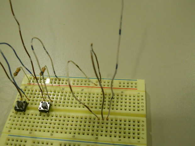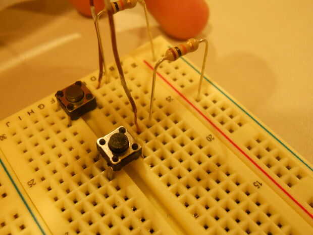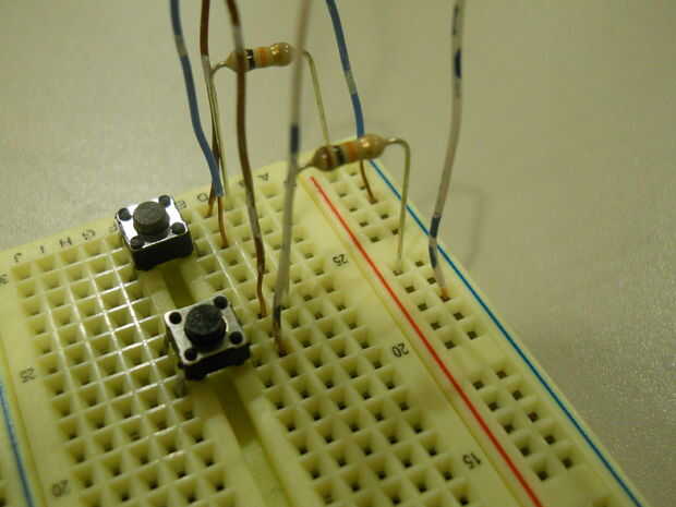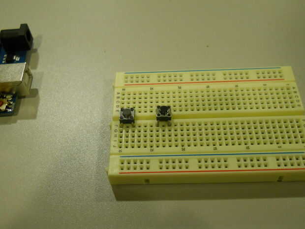 En primer lugar, coloque los dos pulsadores en el protoboard