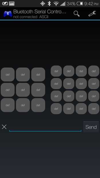 3. en la aplicación, haga clic en la lupa. A continuación, haga clic en el módulo de JY-MCU. Luego debe conectar. La luz roja parpadeante en el módulo deben ir a rojo sólido. Entonces puede tipo "H" en la línea y haga clic en enviar. 13 LED deberá encenderse. Dará vuelta apagado es enviar "L".