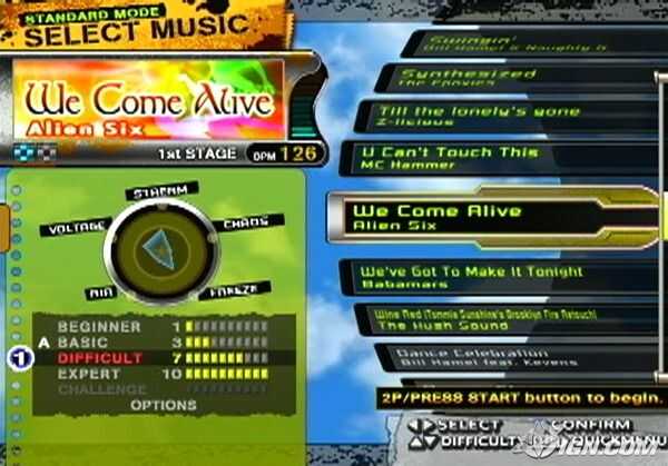 D. elegir jugar una canción ya sea presionando el botón de selección de menú cuando está sobre el cursor, o esperando momento para funcionar hacia fuera. El temporizador no está en la imagen de abajo, pero normalmente se encuentra en la esquina superior derecha de la pantalla. Los jugadores reciben alrededor de 80 segundos para elegir una canción.