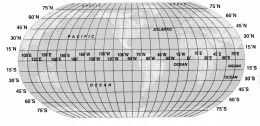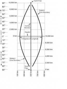 La tierra está dividida en 60 zonas (numeradas 1 a 60) cada 6 º de longitud amplia, a partir de la línea de fecha internacional y se extiende desde 80 º S latitud 84º N.