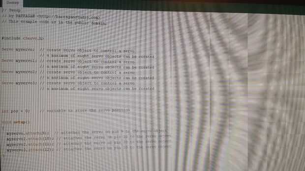 - Repita los cuatro pasos para los última dos servos, pero cambiar sus nombres a myservo2 y myservo3.