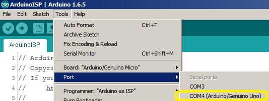 En primer lugar tenemos que configurar Arduino UNO en modo de programación ISP