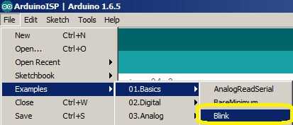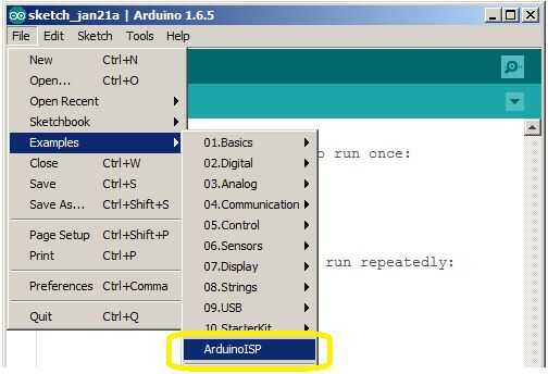 Ir a la barra de herramientas superior y abrir archivo > ejemplos > ArduinoISP