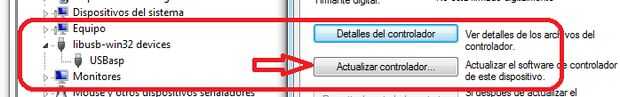 - Ir al administrador de dispositivos y elige actualizar manualmente, seleccione la carpeta usbasp.2011-05-28 y verifique que la opción de incluir subcarpetas