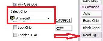 En este enfoque está instalando ProgISP y comprobar que si se reconoce el Usbasp, esto puede hacerse rápidamente abrir ProgISP, seleccionar el chip correspondiente y haciendo clic en bits de lectura firma, debe incitar una ventana de error (véase la imagen de arriba)