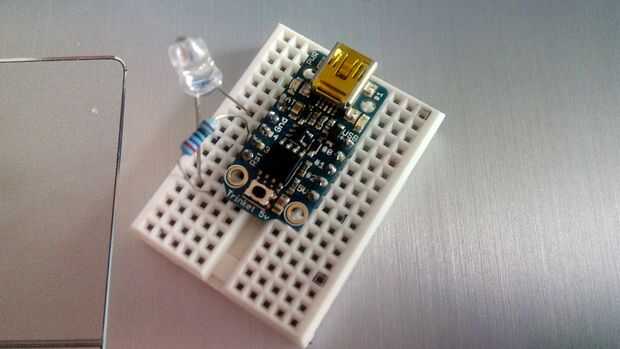 Para construir el circuito, conecte un extremo de la resistencia al pin 3 de la baratija, luego conecte la pata larga del LED (la pata positiva, llamada ánodo) al otro extremo de la resistencia. Ahora conecte la pata corta del LED (la pierna negativo, llamado cátodo) al pin GND de baratija.
