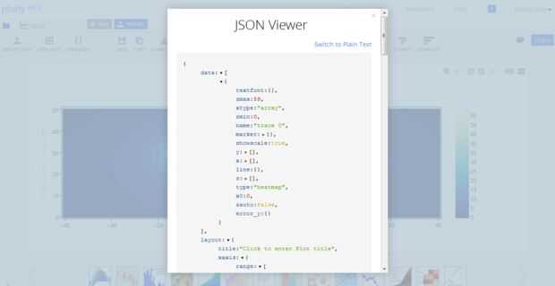 Si tienes que enviar los datos de la API de MATLAB, básicamente está enviando objetos JSON para el sitio web plotly. Estos objetos siguen una estructura muy específica y organizada, dividida en partes, como datos y el diseño.