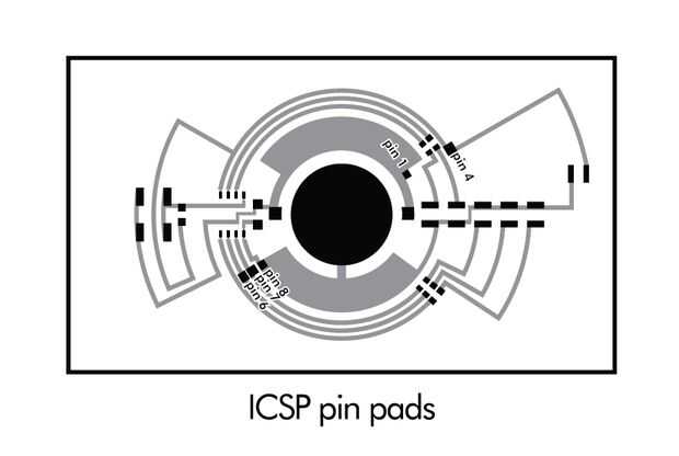 Para ICSP trabajar allí no puede ser cualquiera de los componentes que interfieren en los alfileres de usa tenía un poco de problemas con esto. Después de modificar el diseño original de cobre de la traza y reorganizar los botones ICSP (pero todavía emparejar exactamente el esquema!), encontré que no podía programar tableros ya. La solución fácil es quitar el perno de la conexión del condensador 1 y 8, y funciona correctamente ahora. El componente no es parte integral del diseño, de todos modos.