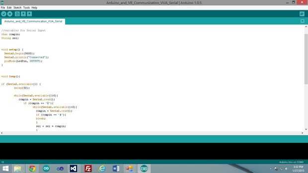 En este video muestro cómo establecer una conexión simple entre el microcontrolador arduino y programa VB (Visual basics) que le permite enviar y recibir comandos desde el microcontrolador a tu ordenador. Útil para proyectos de automatización o así la computadora puede manejar grandes cálculos y funciones que no serían capaces de hacer en el controlador de sí mismo. Esto utiliza un puerto USB de la computadora y el puerto serie en el micro controlador. Esto funciona para casi cualquier controlador ahi y es muy fácil de manipular. Tardé bastante tiempo para averiguar todo esto ya que hay pocos otro tutorial que explica cómo su hecho así que me gustaría demostrarte cómo!