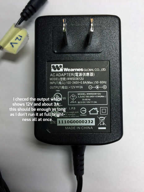 Sin embargo, busco la máxima corriente, fuente de alimentación 12V que pude encontrar y encontré éste, 12V, 3A fuente, que es lo que acabé utilizando.