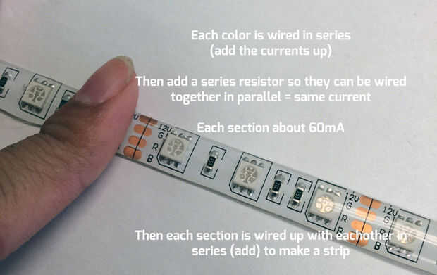 Estamos mirando aproximadamente 60mA de corriente para una sola sección de la tira LED.