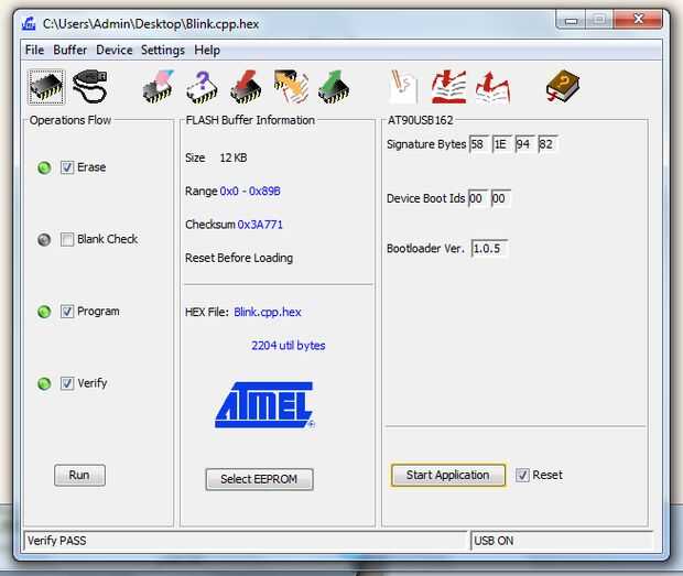 Pulse el botón de Reset en el Minimus AVR para ponerlo de nuevo en a modo de ejecución. Ahora debe ejecutar el código cargado.