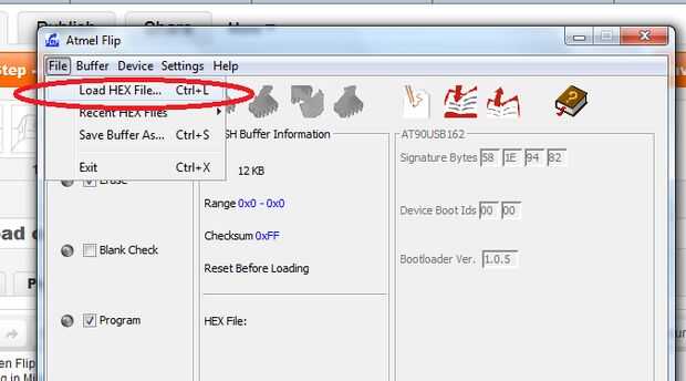 Para poner Minimus en modo de programación, presione reset push HWB, soltar reset, liberar HWB (suena rollo complicado, pero solo con los dedos sobre los botones!)