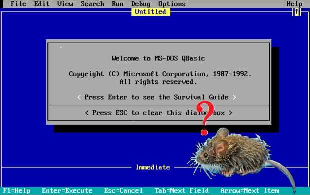 Durante mucho tiempo, quería encontrar una manera de utilizar el ratón en mis propios programas de QBasic. Mientras que finalmente encontré varios ejemplos de código en línea que de hecho de interfaz con el ratón, todos parecían muy complicados para mí, con múltiples subrutinas, funciones y llamadas a procedimientos. Así que, decidí "hervirlo todo" el método más simple, mínimo pelado y a mi conocimiento, lo que se me ocurrió sigue siendo la manera más rápida, más fácil de incorporar funciones de ratón en un programa de QBasic!