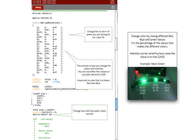 Puede cambiar la velocidad de cambio de los LEDs incrementando MSSHIFT desde los 250 a un número más alto.