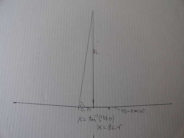 Para mí esto significó 90 - arctan (12 / 0.75) = 3,6 grados