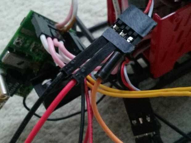 Este es el más simple de las 2 partes. Todo lo que debe hacer es conectar la línea de señal desde el receptor RC con el conector apropiado en el arduino, entonces conecte la línea de señal del servo a otro pin en el arduino.