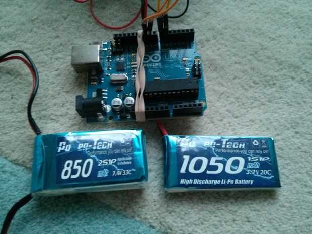 Ahora este paso es altamente dependiente de lo que es su configuración, así que pueden necesitar algunos improvisación de su parte. Ahora estoy usando un helicóptero RC bastante barato que no utiliza un receptor estándar, además los motores que impulsan los rotores funcionar de 3.7V pero requieren una corriente relativamente alta. Como resultado, en mi caso la única opción era usar 2 baterías de especificaciones correspondiente; uno para alimentar el arduino y el otro para alimentar el receptor, servos y motores.