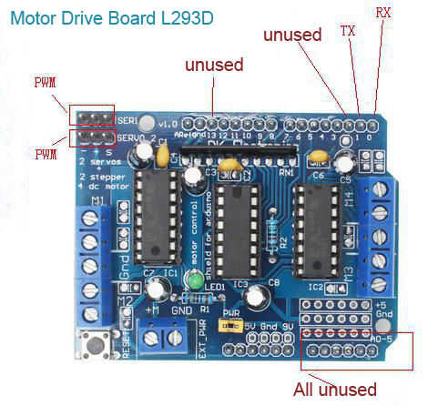 Este tutorial dará el código para mostrar cómo establecer una distancia fija entre un coche robot inteligente y sujetos por L293D Junta de www.ICStation.com. tenemos eso impulsión del escudo y mucha gente piensa que puerto COM de tablero L293D se ha tomado, realmente no. Puedes encontrar no hay ningún cable conectado con los pernos, y podemos utilizarlos mucho. El puerto PWM (patillas 10 y 9) puede ser conectado con el volante motor y demás. Pin0, 13 1, 2 y perno deben soldarse por plancha. Pin0 es PX, pin1 es TX, y cuando se conecta con el módulo de WIFI bluetooth o puerto, L293D puede ser control inalámbrico.