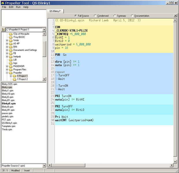 He seleccionado Blinky.Spin por ejemplo, que se carga en el área de trabajo