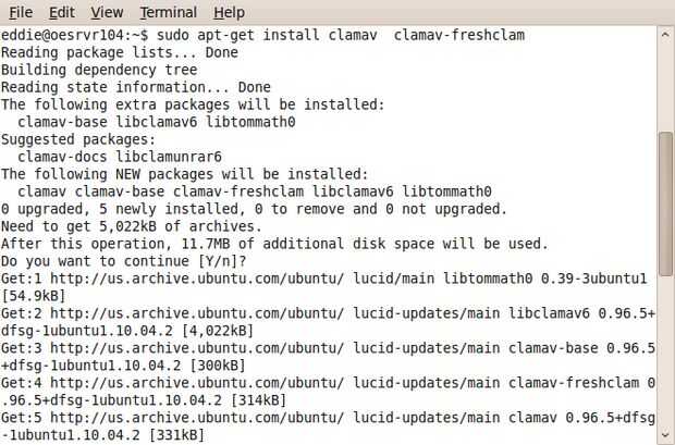 $ sudo apt-get instala clamav clamav-daemon clamav-freshclam