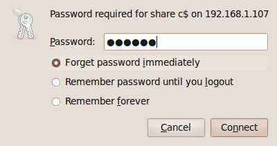 $ sudo mount -t smbfs -o username = adminname, contraseña = adminpassword //192.168.1.133/c /media/smb