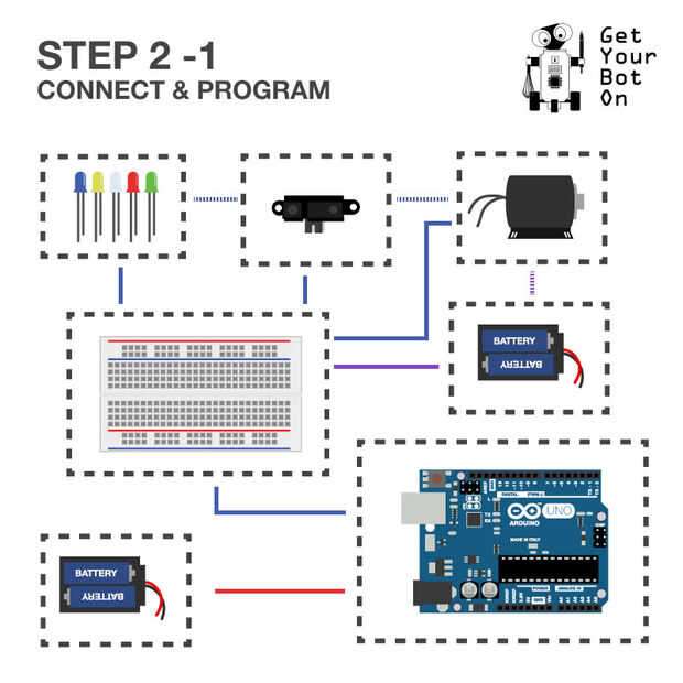 Nuestro Robot va a ser capaz de objetos del sentido cerca. Cuando detecta un objeto, se detiene y es luces se apagarán.