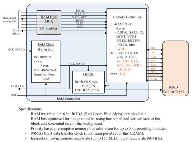 Hardware gráfico especializado poseen generalmente VideoRAMs (VRAM) con varios puertos de lectura y escritura para facilitar estas cuestiones, pero el Micron de 16 MB RAM celular tiene sólo un único puerto PSRAM interfaz y es muy molesto con sus colisiones de ciclo de actualización de datos. Por lo tanto hay necesidad clara de un controlador facilitar el uso de este dispositivo y hacerlo más apto para un acelerador de gráficos.