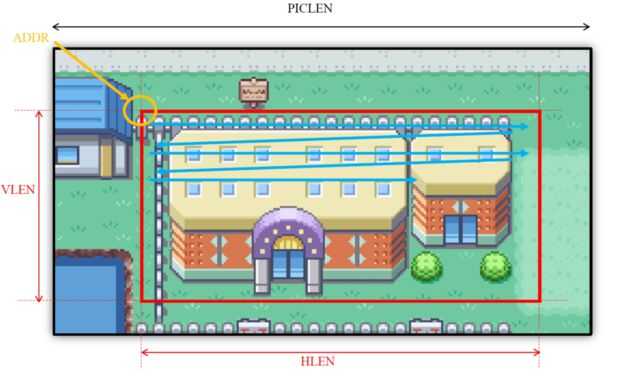 ADDR + HCNT VCNT × PICLEN, con HCNT: 0 a HLEN − 1, VCNT: 0 a VLEN − 1