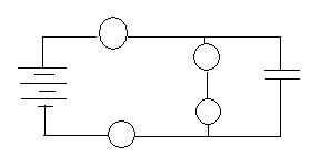 El condensador se ralentizará la velocidad de flujo de carga para que pueda ver lo que sucede cuando se conecta la batería al circuito. Comparar este circuito en el mismo circuito sin condensador y explicar primero que bombillas de luz cuando las baterías están conectadas al circuito sin condensador y por qué estos luz primero.