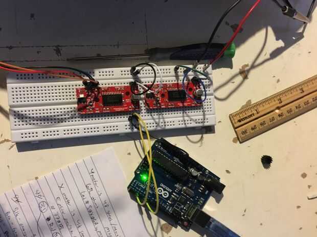 El objetivo, conectar: motores >> respectivos controladores de motor Easydriver >> Arduino >> ordenador.