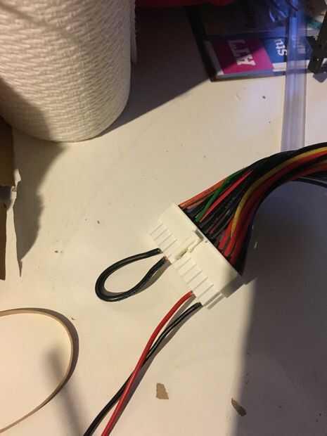 7. Si está utilizando una fuente de alimentación de computadora como yo, usted debe saltar el cable verde a un cable de tierra (negro) (foto 4). Hacer esto con la energía desconectada!!! Saltar el verde y el negro le truco la fuente para pensar que está bien conectada como un independiente. Creo que utilizar cables 18AWG.
