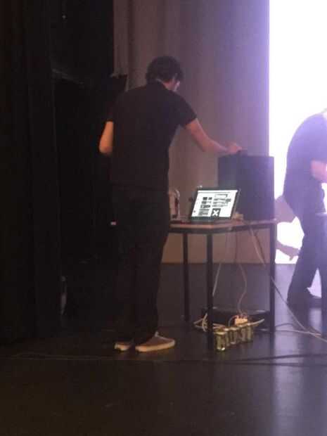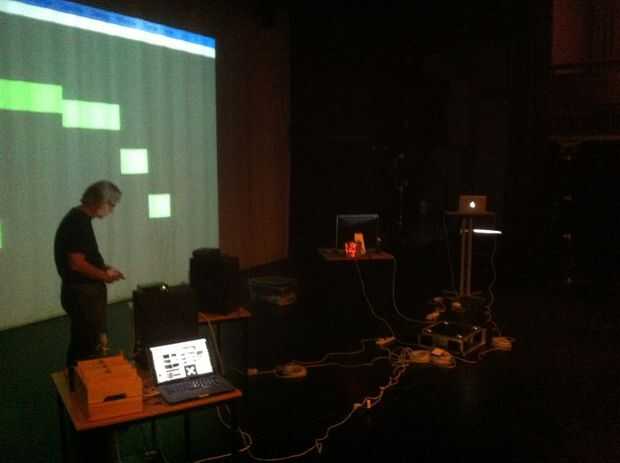 Las fotos que se adjunta a este paso fueron tomadas durante una actuación en vivo con el BLOX. El BLOX se realizó como parte de un conjunto de cuatro instrumentos diferentes. La puntuación se proyecta sobre la pared posterior como una visualización alternativa de la notación. Los artistas respondieron a esto y la pieza fue realizada sin mayores problemas. La actuación tuvo lugar en la Universidad de Wolverhampton el 21 de mayo de 2015. Este es un ejemplo de cómo el BLOX puede ser utilizado como parte de una actuación en vivo.