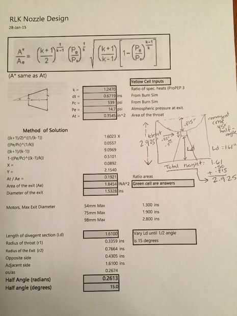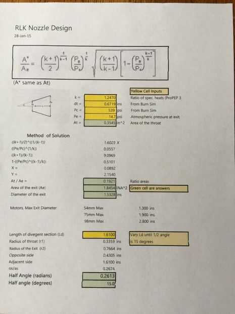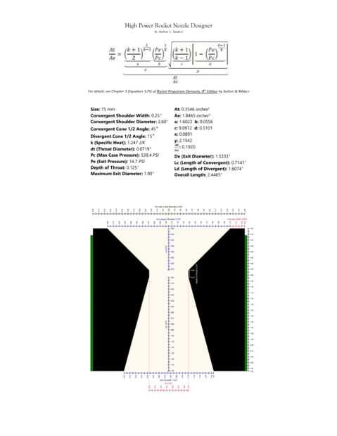 Con la información obtenida en el ultimo paso ya estás listo para calcular las dimensiones de la boquilla! Para más detalles sobre la ciencia detrás de cómo los trabajos de boquilla y cómo se hacen estos cálculos te recomiendo leer el capítulo 3 de la 8ª edición de cohete propulsión los elementos George P. Sutton y Oscar Biblarz.