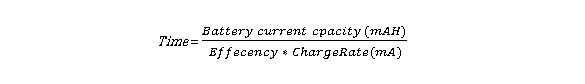 Para estimar cuánto tiempo llevará una batería para cargar totalmente, podemos utilizar la fórmula vista en la segunda imagen de arriba.