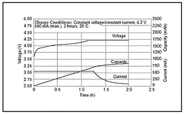Carga ocurre cuando Li-ion pasa de positivo a negativo electrodos circula una corriente con la ayuda de la fuente de alimentación externa. El tiempo de carga de la batería puede variar dependiendo de cuanta corriente es suministrada por la energía externa, o el cargador LiPo. Mirando la imagen de la curva carga superior, podemos ver que hay un proceso de carga (voltaje actual y constante constante) que tenemos que tener en cuenta.