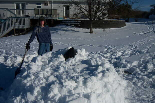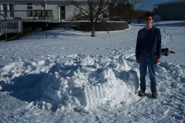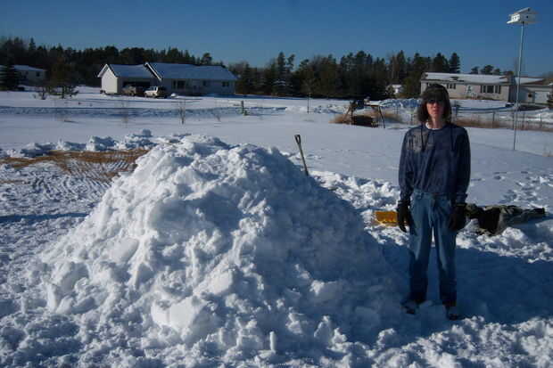 - Una vez que el montículo de nieve es del tamaño que desee, lanzar la nieve un poco más en la parte superior y alrededor de todos los lados, sólo para asegurarse de que las paredes son gruesas bastante estructuralmente. Luego use la parte posterior de una pala para suavizar los bordes, que estás en ese tipo de cosas.