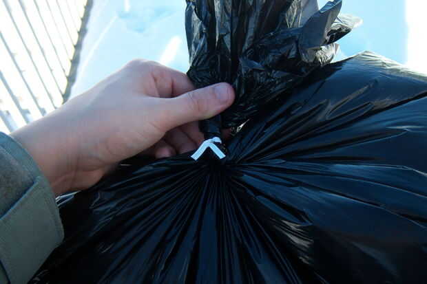 - Inflar tus bolsas de basura como un globo, pero tenga cuidado de poner las bolsas de plástico cerca de su cara y tal vez no deje que los niños ayudan con este paso. Luego use una corbata twisty para asegurar la boca de la bolsa, seguida por un nudo rápido para asegurarse doble es hermético. Puede tomar algo de práctica, probablemente harás unos trapos antes de entrar rápido en él. Nuestro quinzhee tomó cerca de 25 bolsas de basura.
