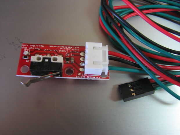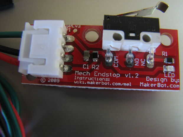 Para la construcción utilizamos interruptores mecánicos. Los interruptores pueden ser con cable que normalmente abierto (NO) o normalmente cerrado (NC). Utilizamos normalmente abierto, es decir, cuando se encuentra el interruptor se cierra los contactos y envía una señal al puerto Arduino a través de la Junta de rampas. Esta lógica puede cambiarse en el firmware a normalmente cerrado si lo desea. Algunos argumentarán que NC es mejor como si uno de la rotura de cables por accidente se disparará las rampas diciéndole que ha alcanzado el máximo o mínimo. Elegimos NO como único hogar la impresora una vez por la impresión y por lo tanto, la impresora se hace una señal en sus puertos una vez vs tener la lógica en el puerto todo el tiempo a través de la impresión.