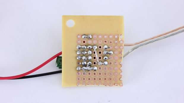 Entonces una vez que todo está funcionando correctamente, puede soldar las piezas en un pedazo de tablero de perf. Para ayudar a ahorrar espacio, cortado las secciones no utilizadas de la placa de circuito para que sea más pequeño. También poner del encogimiento del calor de la tubería en el LED a estrecha el rayo de salida y hacerla más precisa.