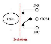 (Generalmente), un relé es un interruptor electromecánico. (Ver fotos) El relé es la parte superior del dibujo. Lo poco de rizado cue es la bobina. Es un electroimán es un imán cuando se aplica voltaje a la bobina. Cuando no hay tensión, el conector de COM (común) está conectado al conector NC (Normal conectado).