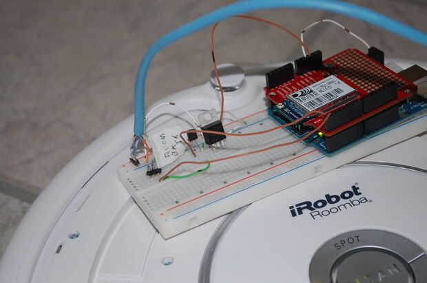 Cuando acople el conector a la Roomba, el Arduino potencia LED deberá encenderse.
