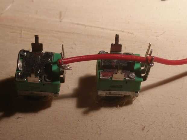 - La misma técnica que se describe arriba, para conectar todos los argumentos juntos (pasador central del interruptor de palanca, o una de las dos patillas de un botón).