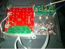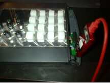 Si hace referencia a la PCB principal esquemático en el paso 5, se notará que he usado dos reguladores de voltaje para este diseño. IC3 se establece para regular el voltaje a 5 voltios. Este voltaje se utiliza para alimentar el chips, pantalla LCD y botón tecla ' LEDs. El otro regulador de voltaje, IC5, es una tensión de referencia ajustable para los potenciómetros y los canales de ADC. Esto se ajusta mediante un potenciómetro pequeño montaje de la superficie situado directamente al lado de él. También hay un diodo en serie en la entrada de estos reguladores de voltaje para mantener cualquier cosa de ser dañado si la tensión de entrada fue accidentalmente invertida. Me aseguré que el diodo fue valorado lo suficientemente alto para manejar la corriente. Situado alrededor de la foto son varios conectores para conectar a la tecla almohadilla y LEDs. La función de cada pin se discutirá en una sección posterior. A la derecha de la foto son los conectores que se utilizan para conectar con el puerto de expansión de canal analógico y el puerto de programación. La razón por la que tengo el puerto de programación en el mismo PCB como el puerto de extensión de la ADC es que quiero poder programar el PIC sin tener que quitar la tapa de la unidad. Para acceder a él, el panel lateral se debe quitarse como se muestra en la figura 5.0.